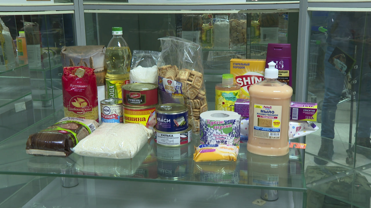 «В один продуктовый набор у нас входит 12 позиций. Это крупы, вермишель, различные консервы, сладкое, чай, мука, масло и другое», – рассказала волонтёр Ксения Борина.