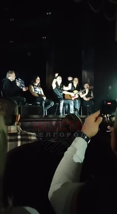 Концерт продолжился под акустическую гитару при свете фонариков мобильников. Зал подпевал хором.