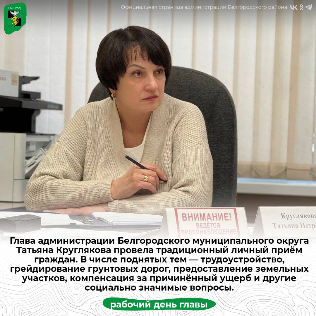 Глава администрации Белгородского муниципального округа Татьяна Круглякова провела традиционный личный приём граждан