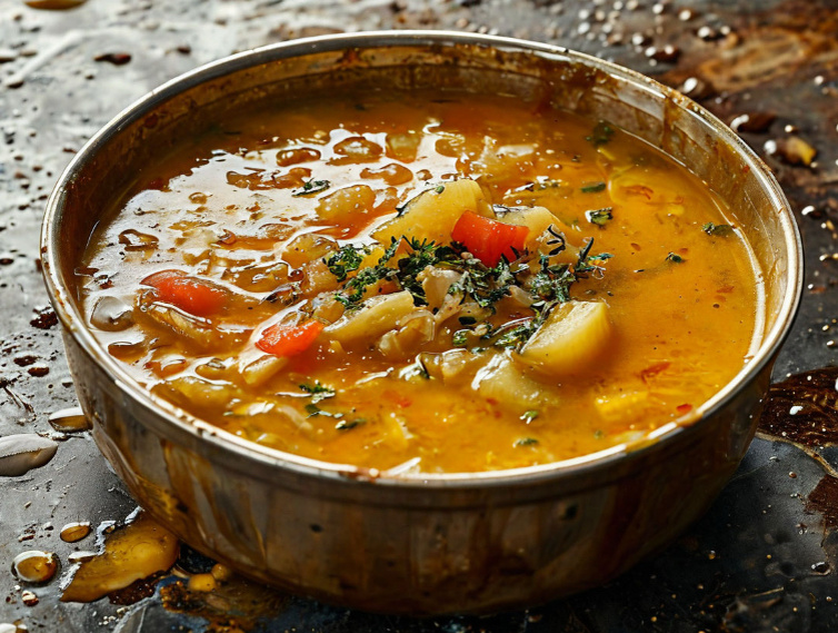 Жир всегда стремится подняться на поверхность. Если замечен излишек, просто дайте блюду немного постоять, а затем аккуратно снимите жир шумовкой. Хороший трюк — обернуть кубик льда в марлю и провести им по поверхности: жир прилипнет к ткани, а блюдо станет более аппетитным.