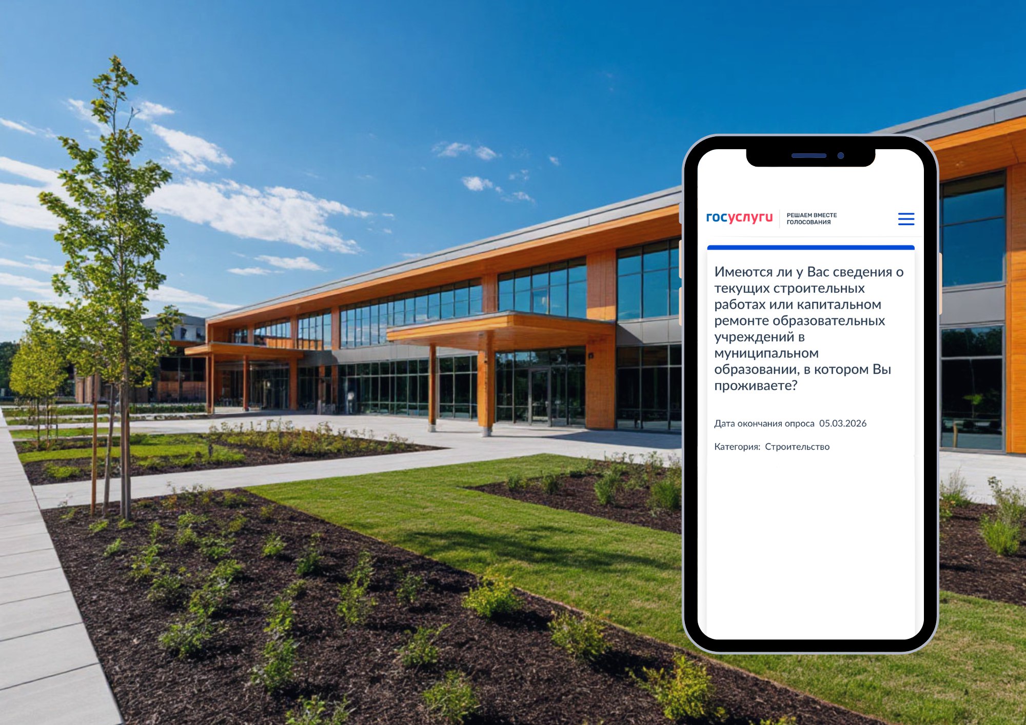Приглашаем вас принять участие в опросе, размещённом на платформе обратной связи: о текущих строительных работах или капитальном ремонте образовательных учреждений