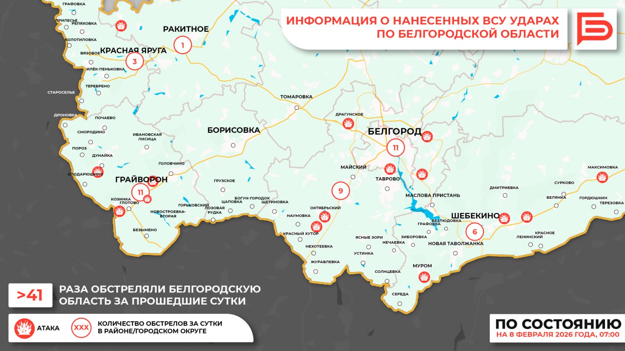 За прошедшие сутки ВСУ обстреляли Белгородскую область не менее 41 раза