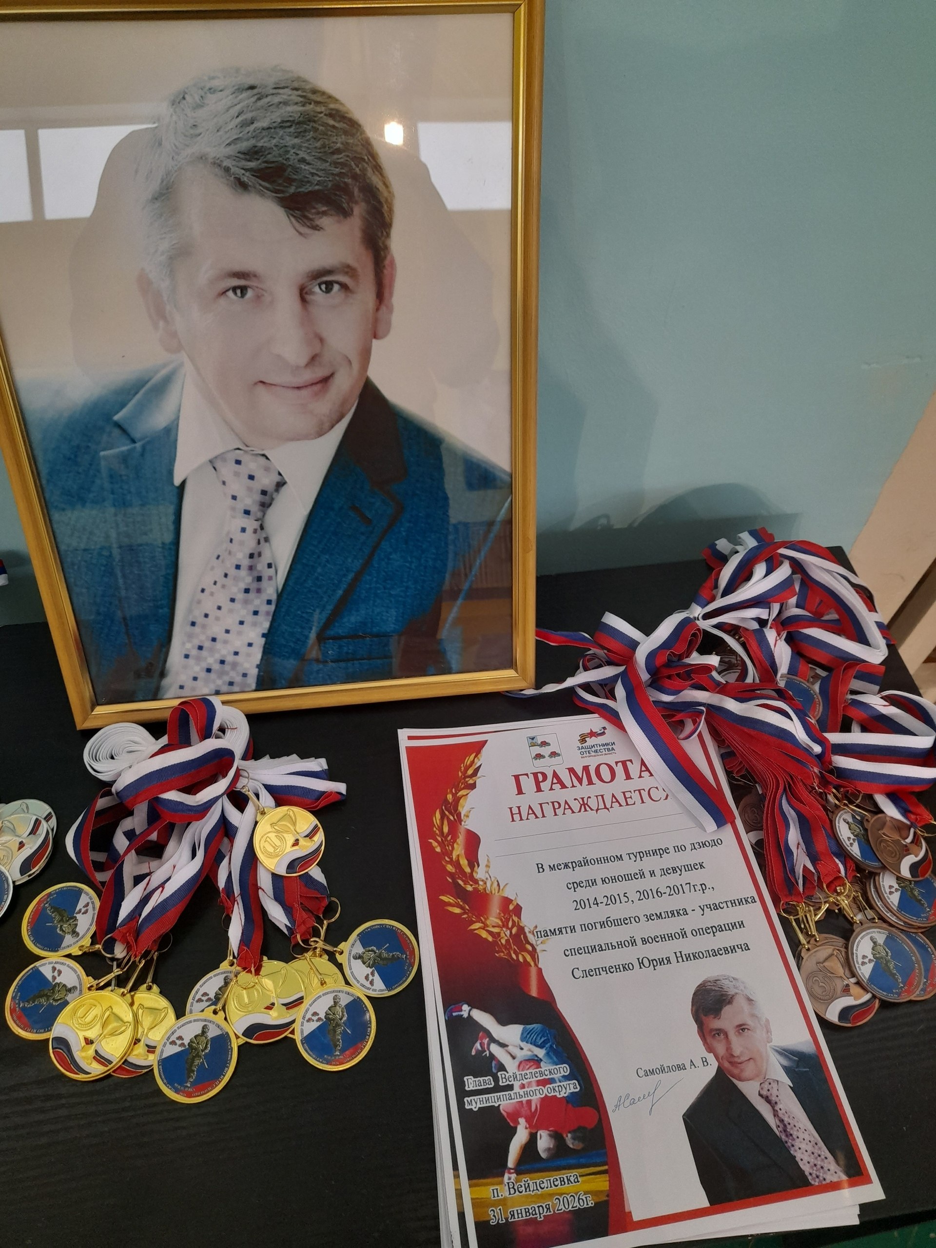 В спортивном зале Вейделевского Центра культурного развития состоялся турнир по дзюдо, посвящённый памяти нашего земляка, участника специальной военной операции Юрия Николаевича Слепченко