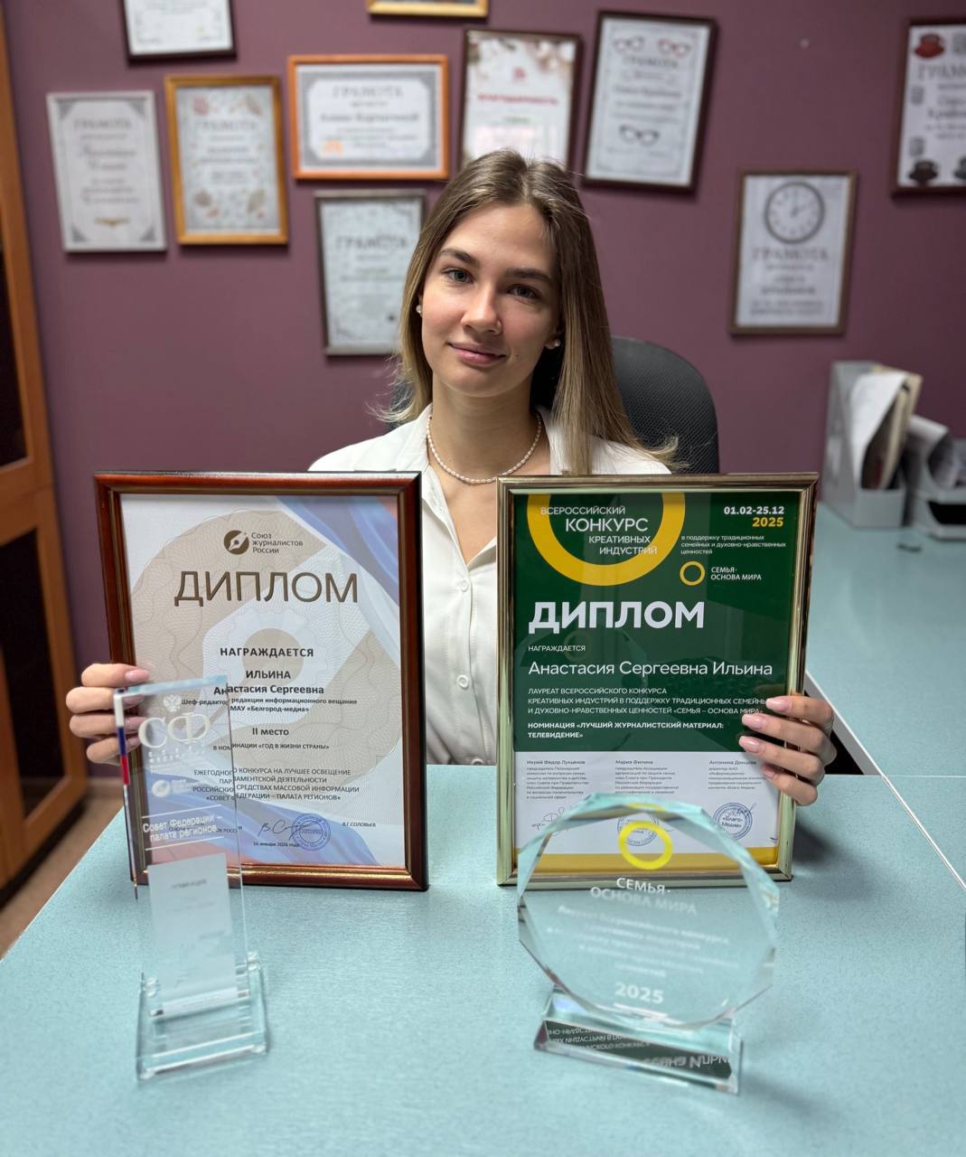 Шеф-редактор редакции информационного вещания «Белгород-медиа» Анастасия Ильина стала призёром всероссийских конкурсов