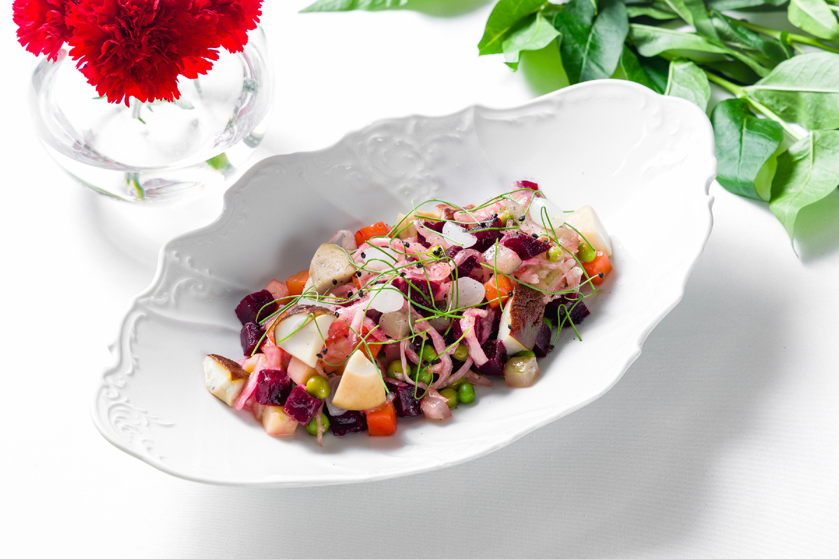 В гранд-кафе «Dr. Живаго» белые грибы не только добавляют в винегрет, но и используют в супе с перловкой и в соусе к куриным котлетам. Винегрет в этом заведении находит своих поклонников благодаря сочетанию классических ингредиентов и уникальных добавок. Ресторан охотно поделился своим фирменным рецептом, который просто невозможно не попробовать.