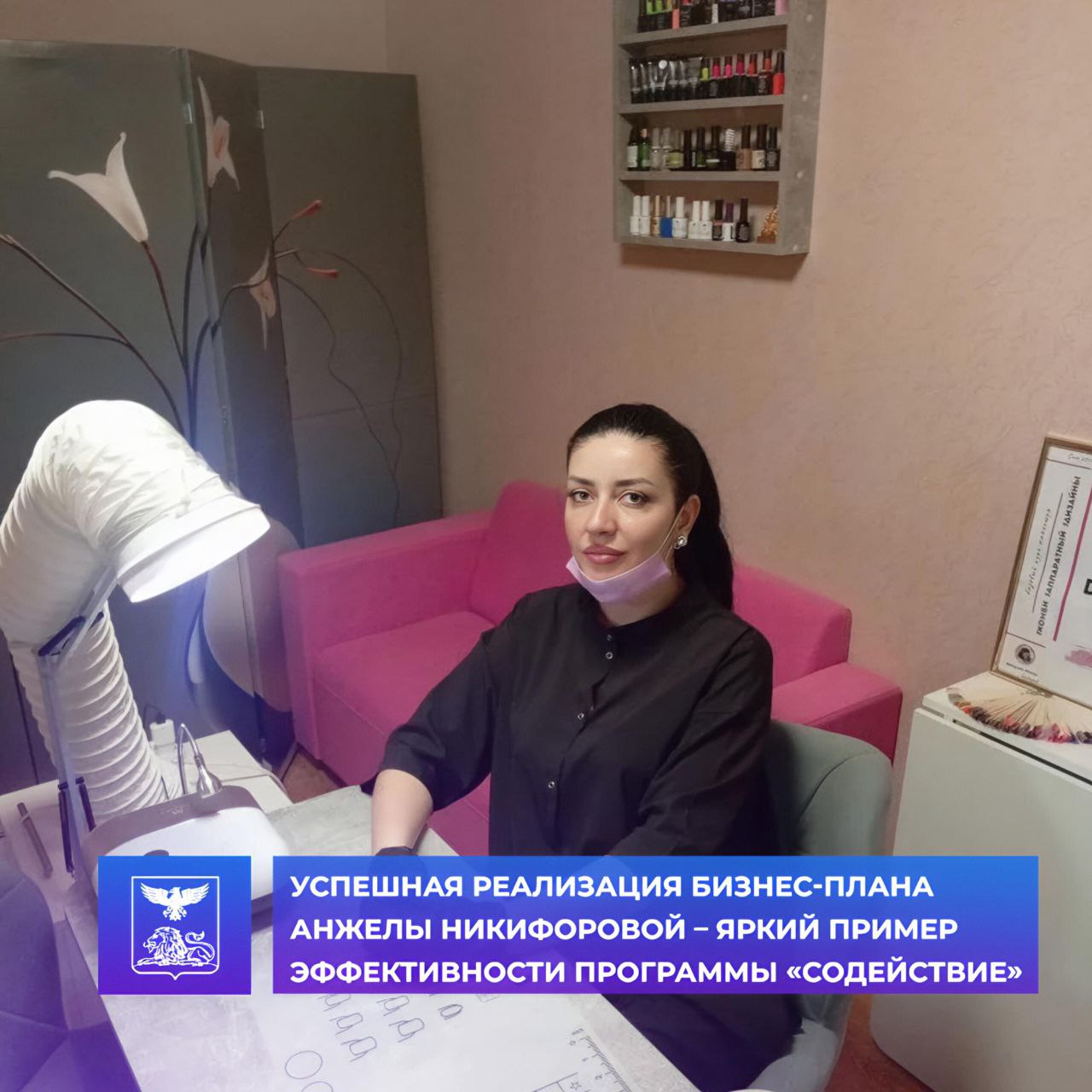 Анжела Никифорова из Староивановки получила государственную помощь в рамках соцконтракта на развитие кабинета маникюра и педикюра.