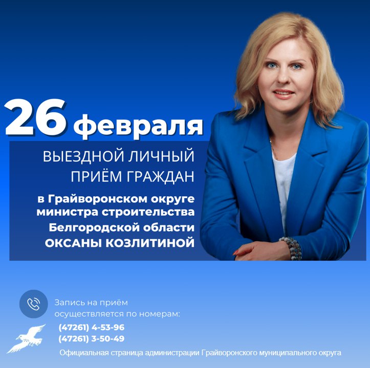 Министр строительства Белгородской области Оксана Козлитина проведёт выездной личный приём граждан по вопросам, относящимся к компетенции минстроя.