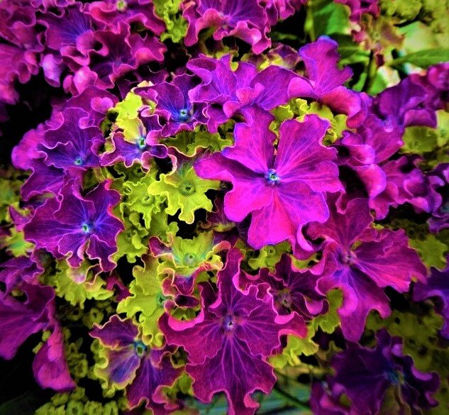 Преимущества этих сортов заключаются в том, что они обретут свой полноценный цвет без необходимости использования специальных удобрений. Соцветия объемом до 25 см великолепно наполнены крупными цветками с чашечками особой кружевной формы. Яркие центральные бутоны, раскрывающиеся в центре соцветий, добавляют шик и привлекательность, создавая визуальный акцент.