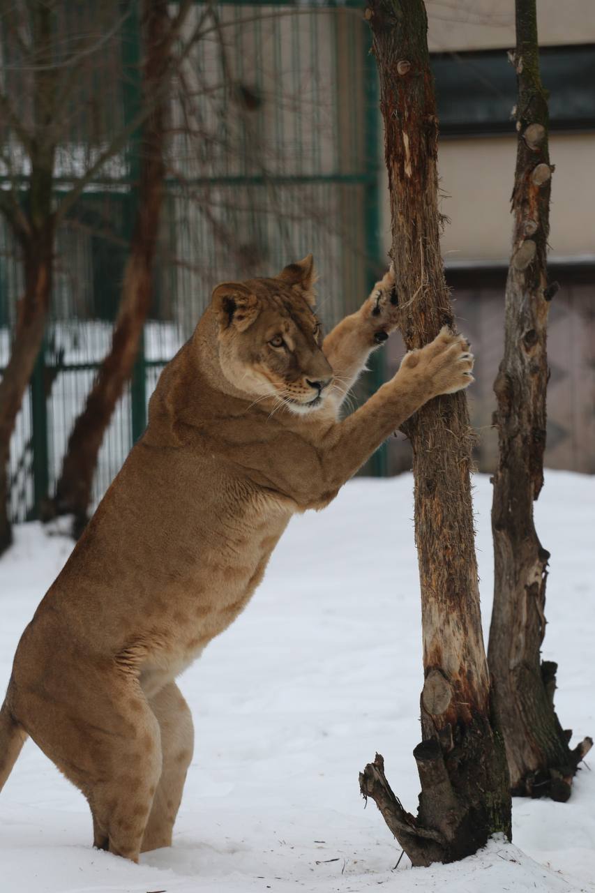 Пока домашние кошечки нежатся в кроватке у своих кожаных хозяев, красавица-львица уже вышла на утренний променад.