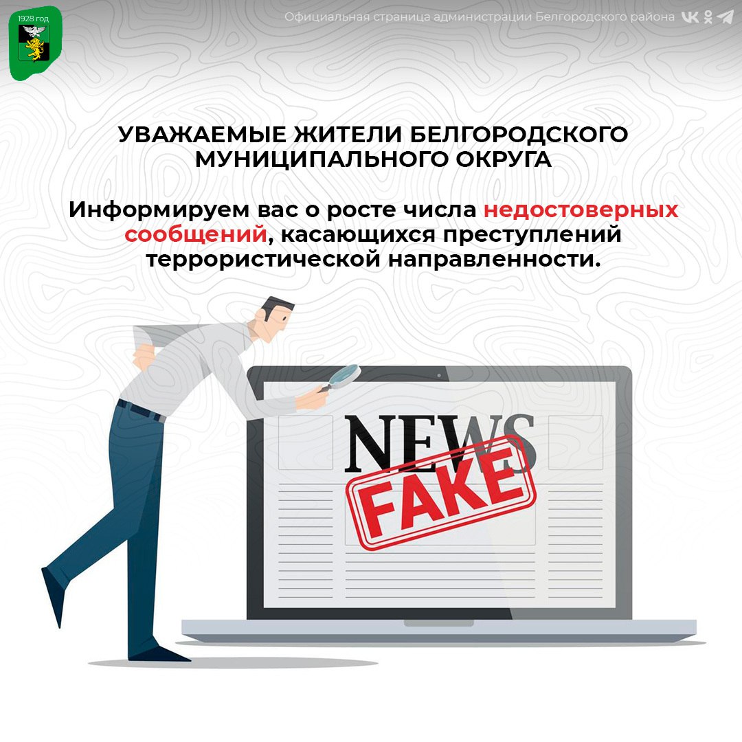 Информируем вас о росте числа недостоверных сообщений, касающихся преступлений террористической направленности.