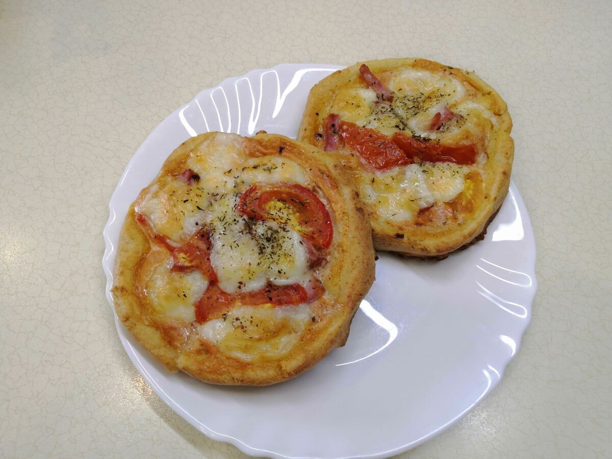 Для создания основы мини-пиццы необходимо объединить творог, оба типа муки, яйцо, разрыхлитель и немного соли. Получившуюся массу разделить на четыре равные части. Сформировать из них кружки с бортиками, используя влажные руки. Затем запечь основы в разогретой до 180 градусов духовке в течение 10 минут.