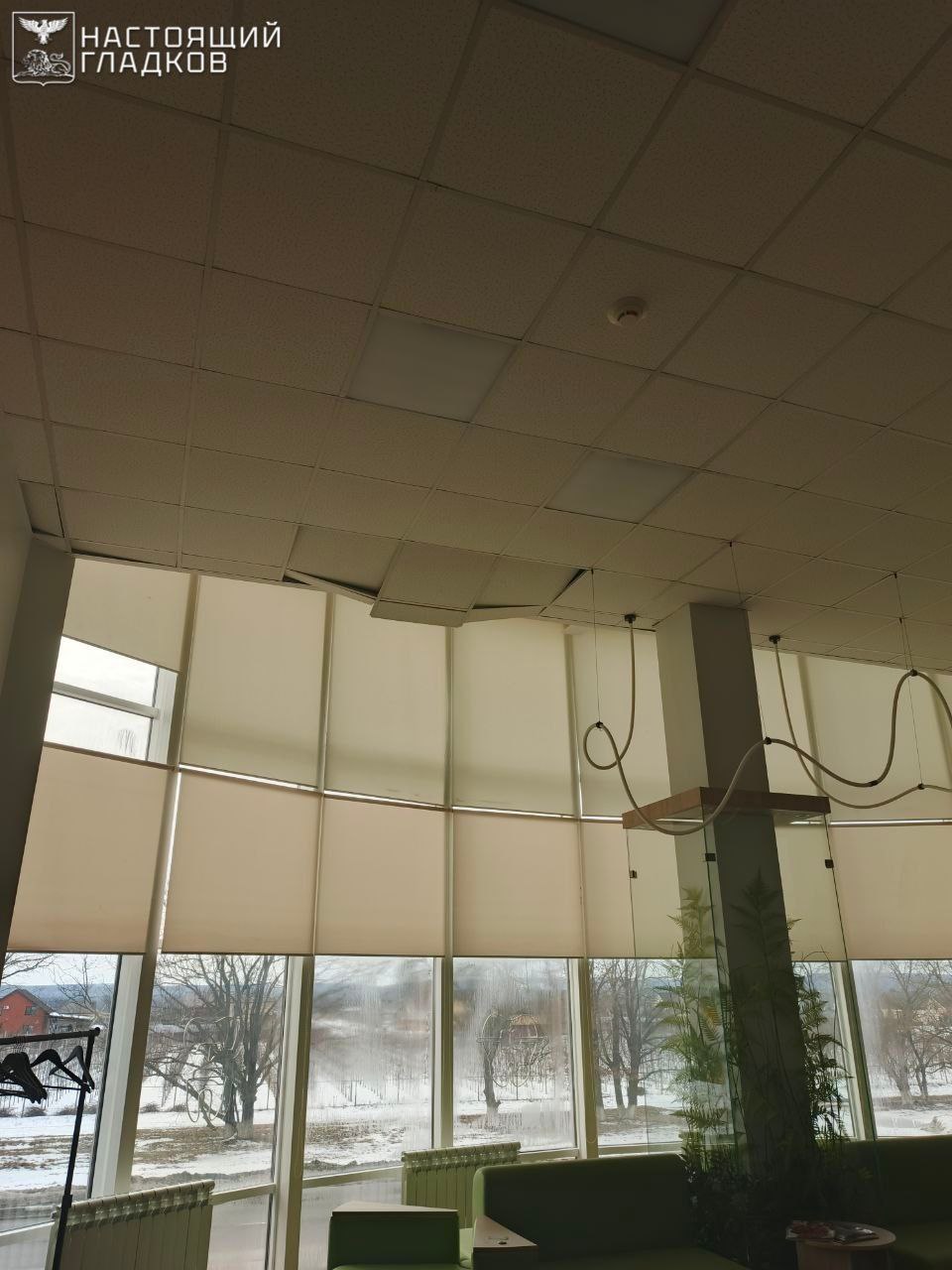 В здании повреждены кровля, потолок и внутренняя отделка одного из помещений.