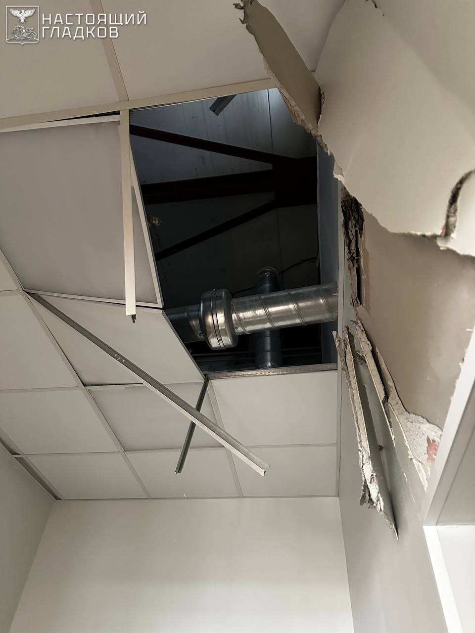 В здании повреждены кровля, потолок и внутренняя отделка одного из помещений.