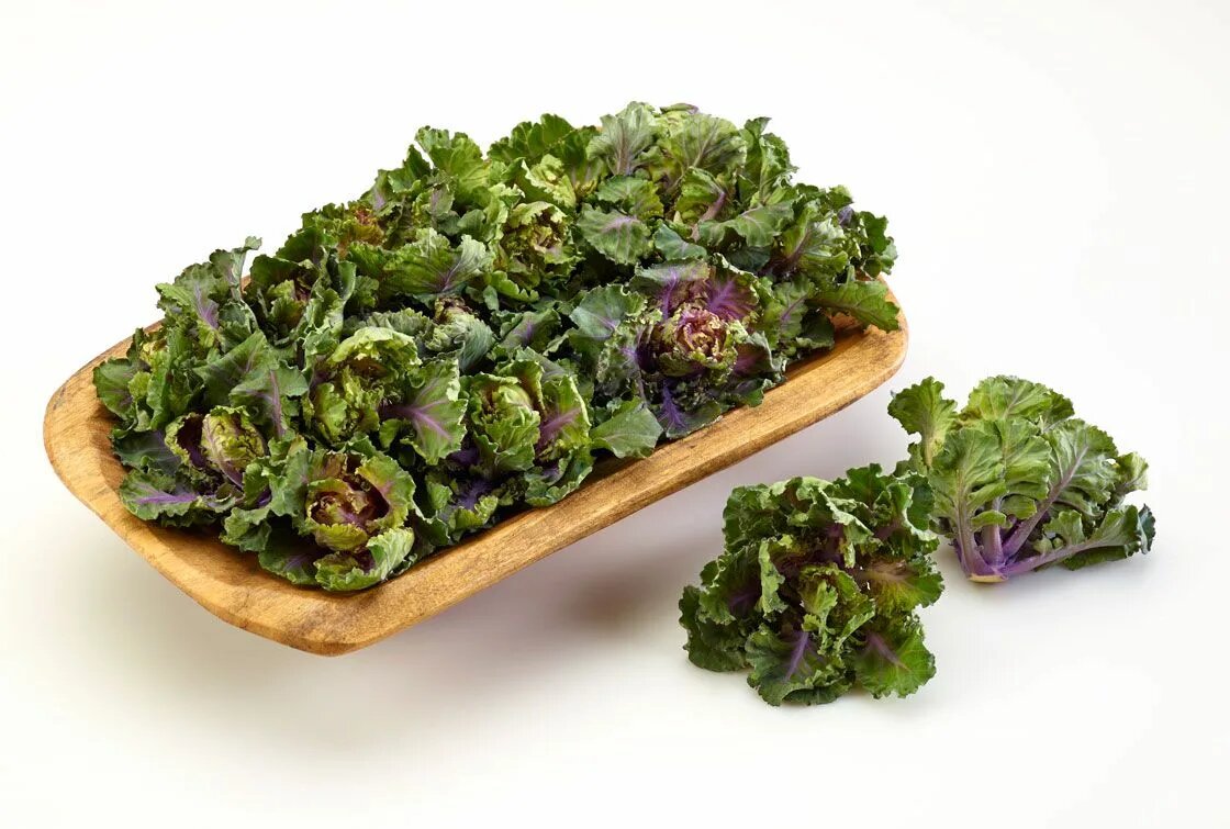 Это компактное растение формирует мини-розетки из волнистых зелёно-бордовых листьев, которые значительно нежнее, чем у традиционной брюссельской капусты. Кроме того, шикарные розетки обладают сладковатыми ореховыми нотами, что делает их всё более популярными в кулинарии.