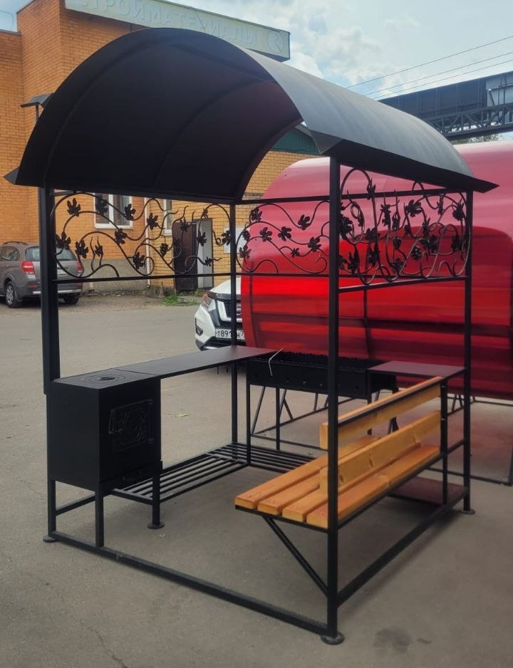 При внимательном рассмотрении стало ясно: нет подвоха, все детали на месте. Под крышей вьется кованая лоза, с которой свисает виноград. Муж планирует самостоятельно завершить конструкцию. И хотя к печке есть вопросы, мечта об уюте и празднике обрела новые очертания.