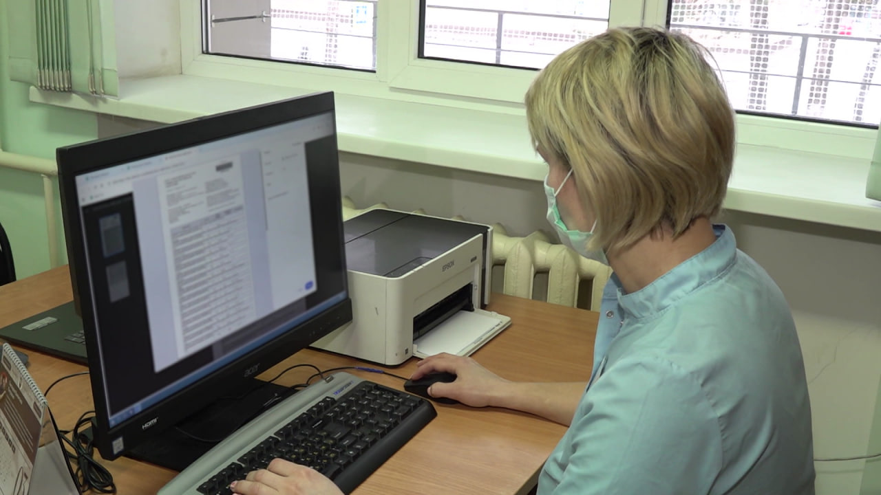 В кабинете ведут приём врач и медсестра. Терапевт проводит первичный осмотр, анализирует историю болезни. Все данные пациента вносят в единую электронную базу. После – бойца направляют на обследование к узким специалистам.