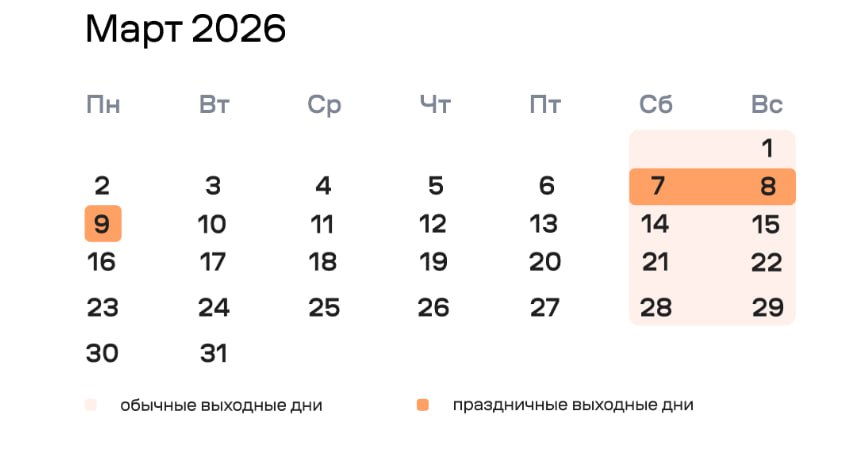 При этом рабочий день в пятницу, 6 марта, не будет сокращён на час, так как не предшествует непосредственно праздничному дню.