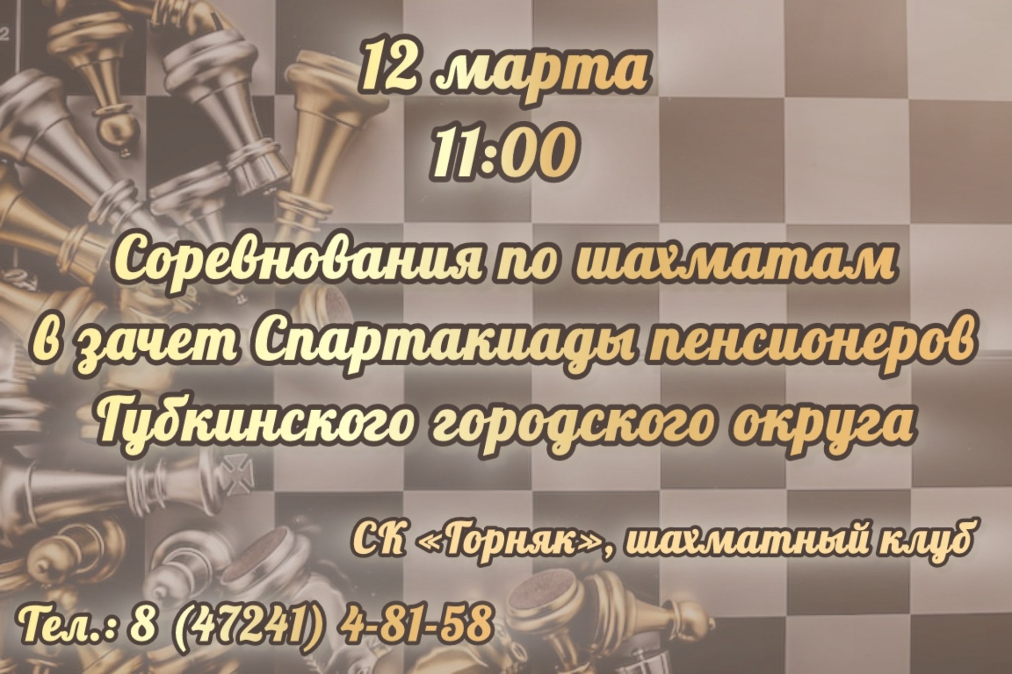Приглашаем принять участие в соревнованиях по шахматам в рамках Спартакиады пенсионеров Губкинского городского округа!
