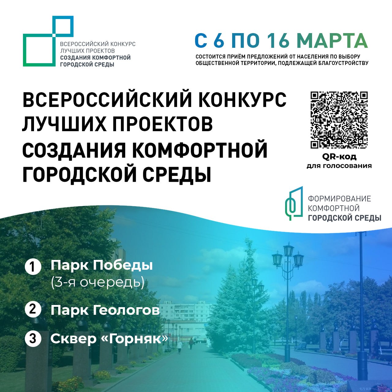 Михаил Лобазнов: Дорогие старооскольцы!. Предлагаем вам выбрать территорию, которую планируется преобразить в 2027 году благодаря участию во Всероссийском конкурсе лучших проектов создания комфортной городской среды