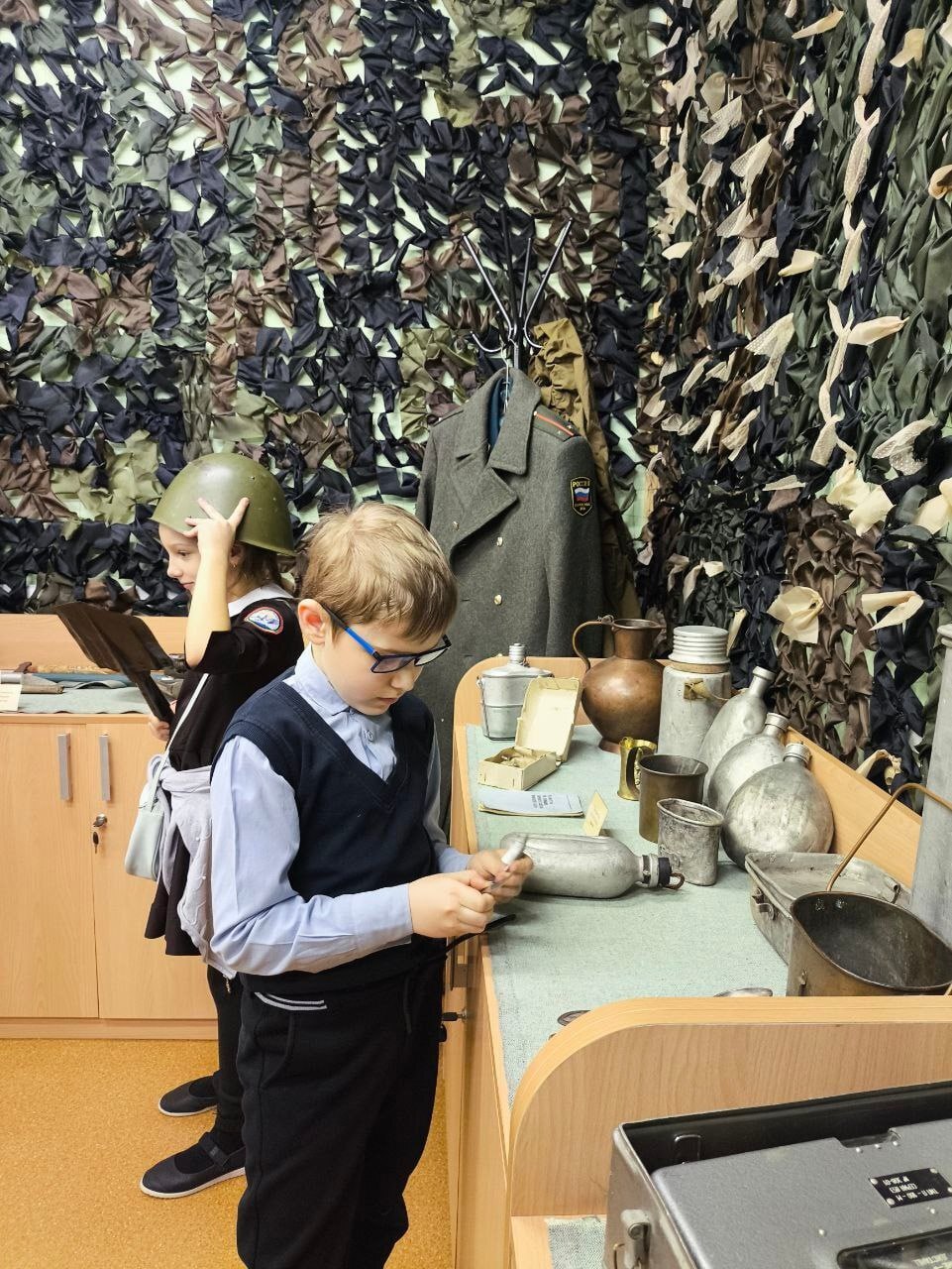 Вместе с экскурсоводом ребята буквально переносятся в прошлое. Они узнают, почему солдатский мешок называли «сидором», и рассматривают предметы, которые помогали бойцам выживать и не падать духом: