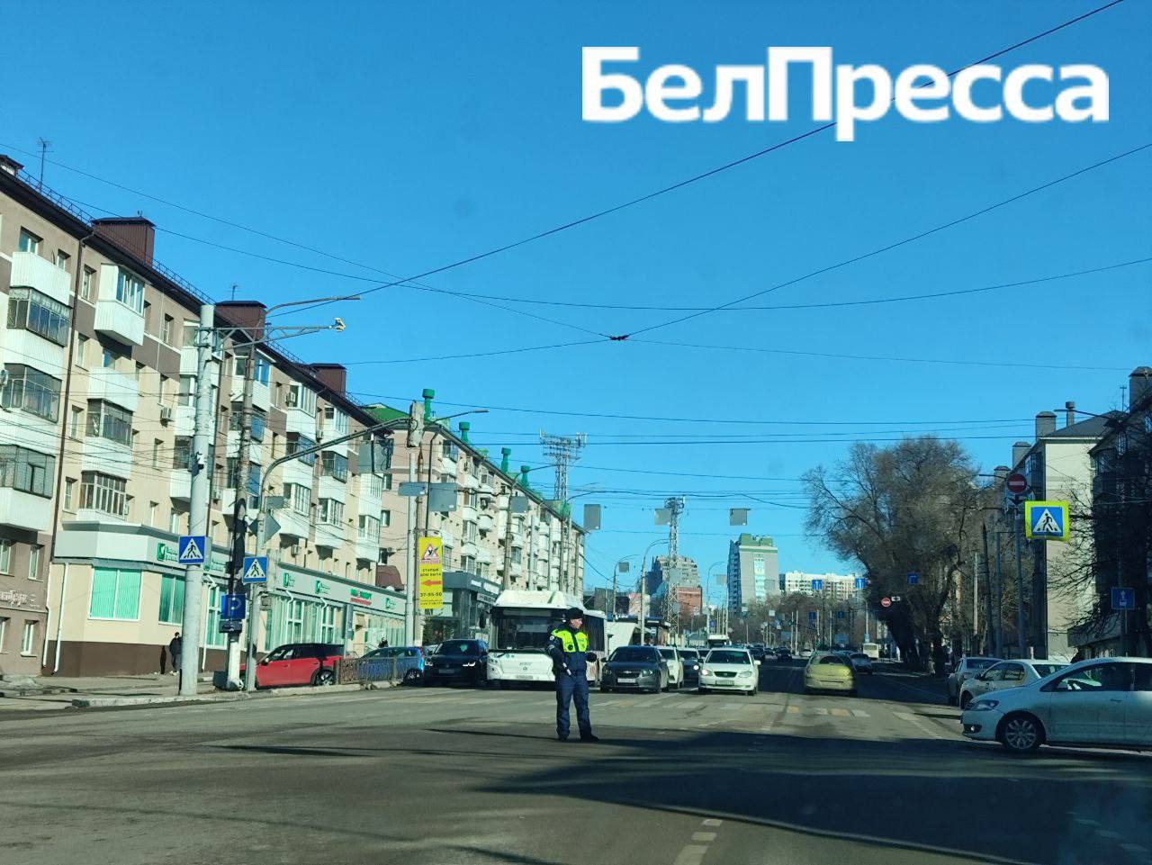 На улицах Белгорода, где обесточены светофоры, работают регулировщики.