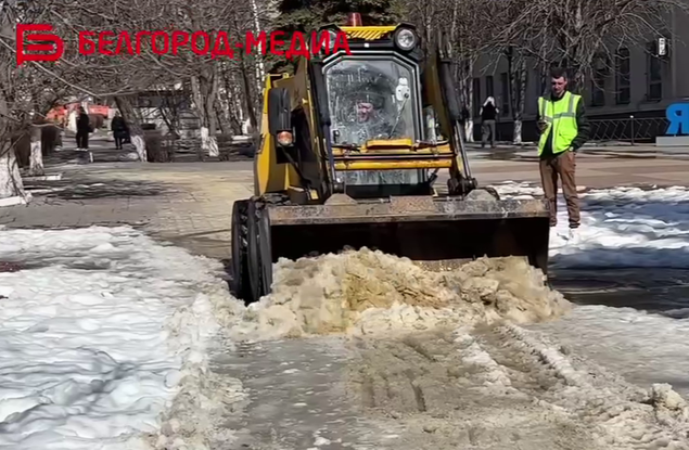 На участках, где осталась наледь, проводят механизированную уборку, собирают и вывозят снег.