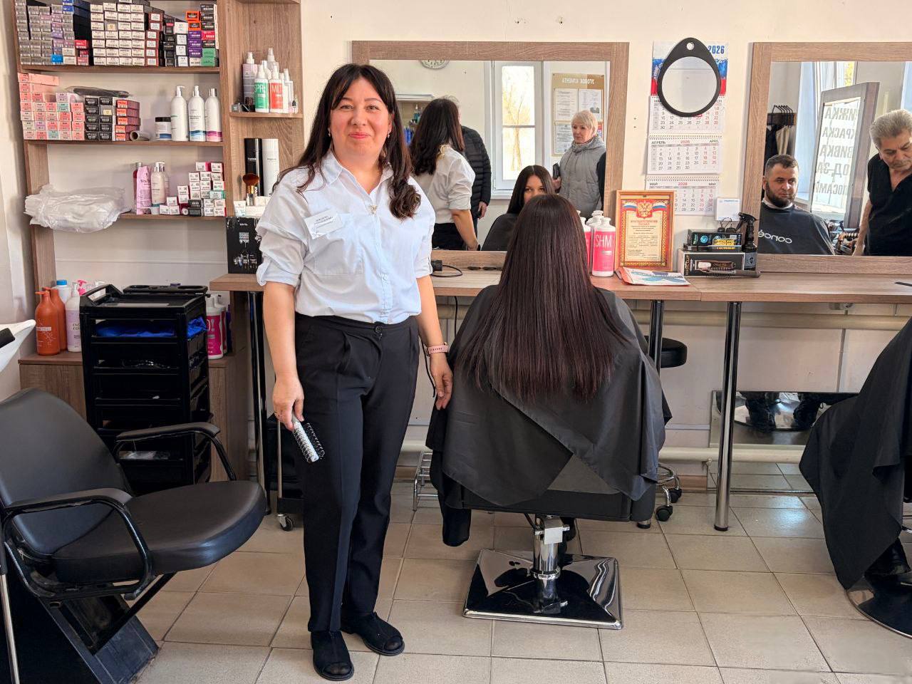 Ирина стала получателем социального контракта и направила выделенные средства на развитие парикмахерского искусства. На полученные 350 тысяч рублей она приобрела все необходимое для комфортной работы: профессиональное кресло для стрижки, зеркало, шкаф, стол мастера, мебель для зоны отдыха клиентов, а также машинки для стрижки, ножницы и различные средства для укладки и окрашивания волос.