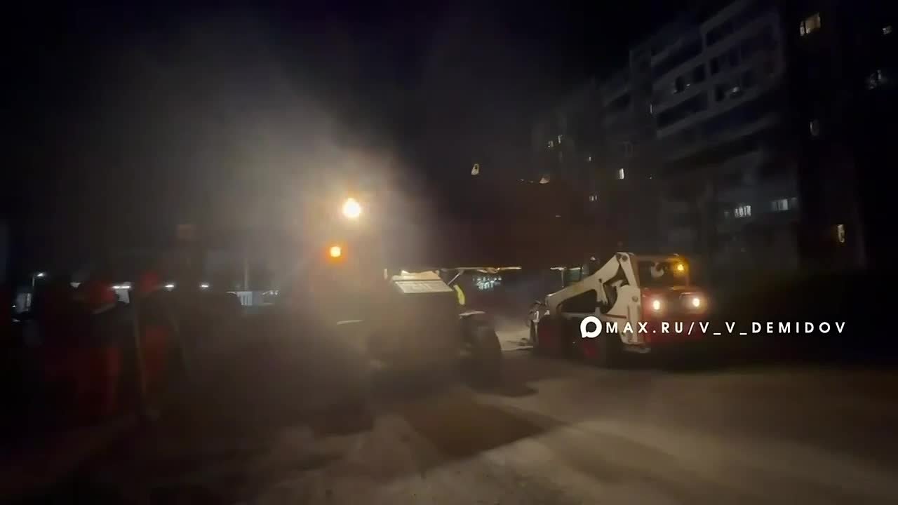 Безостановочно 24/7 продолжается ямочный аварийный ремонт. 2-3 бригады работают на автодорогах днем и ночью.
