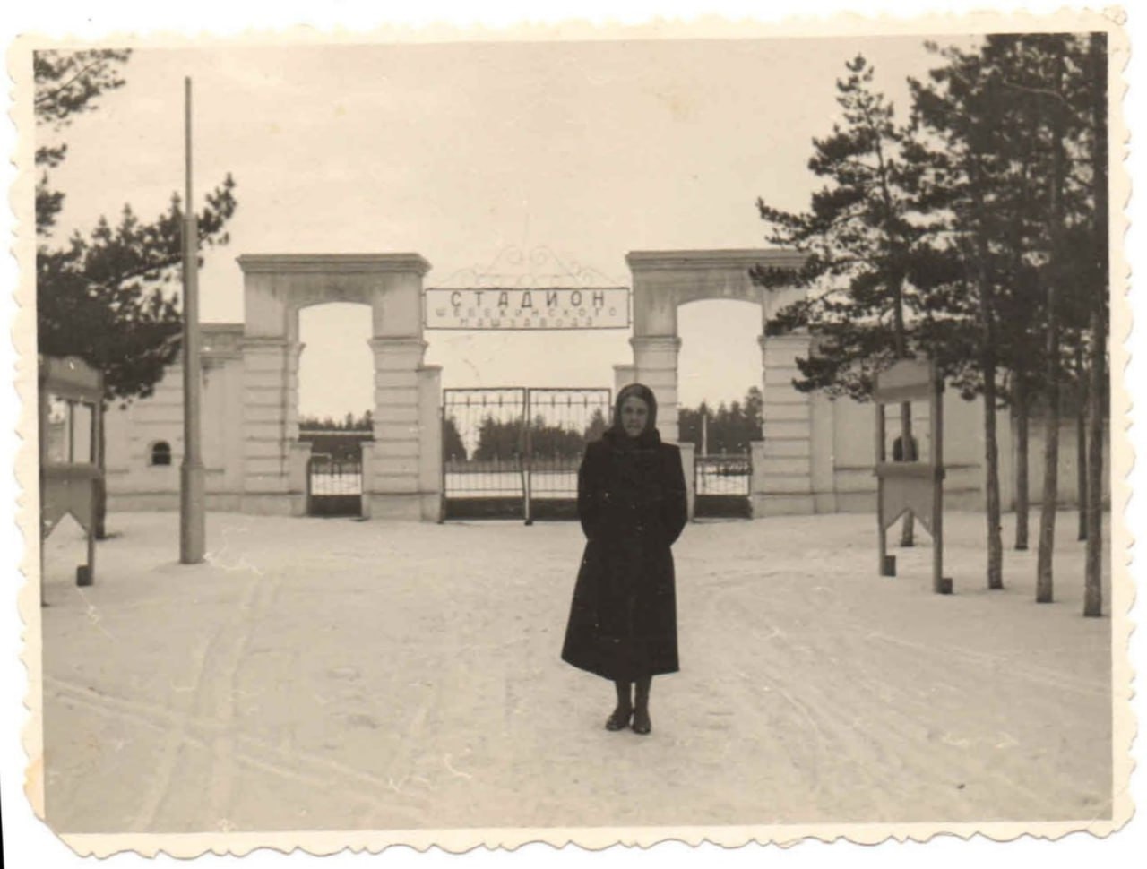 1. Фотография сделана у центрального входа на стадион в городском парке. 1960-е гг.