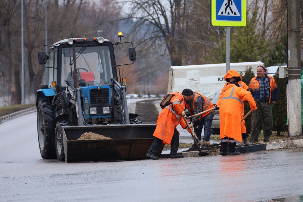 Сотрудники коммунальной службы сервиса продолжают весенние работы по наведению порядка в округе после долгой зимы в рамках национального проекта «Экологическое благополучие».