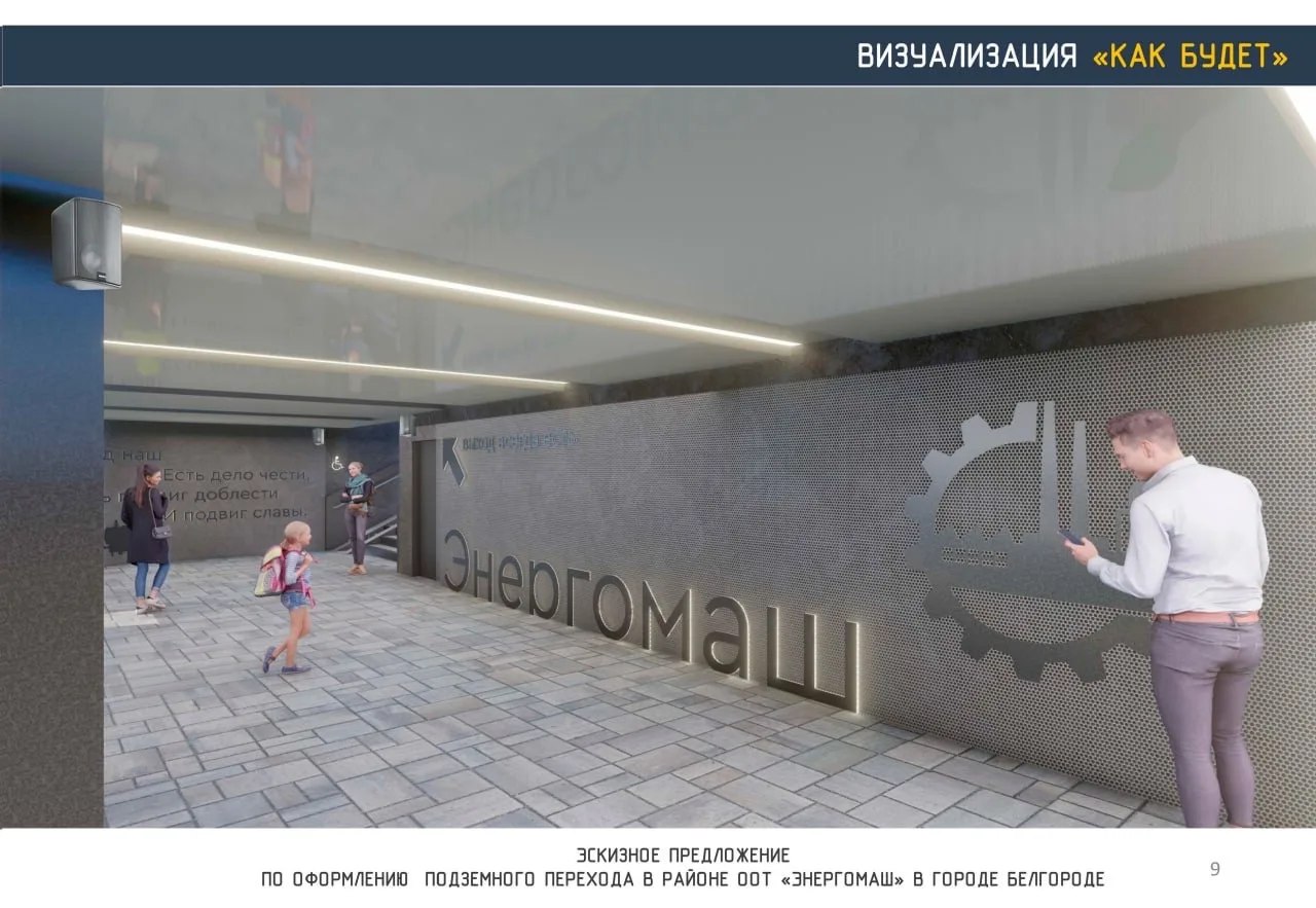 Проектная документация прошла госэкспертизу, в ближайшее время будет определён исполнитель. Для внутренней отделки будет использоваться металлический композит. Опыт его применения в городе уже показал свою эффективность – им отделан подземный переход через пр. Б. Хмельницкого от НИУ БелГУ в парк Победы.