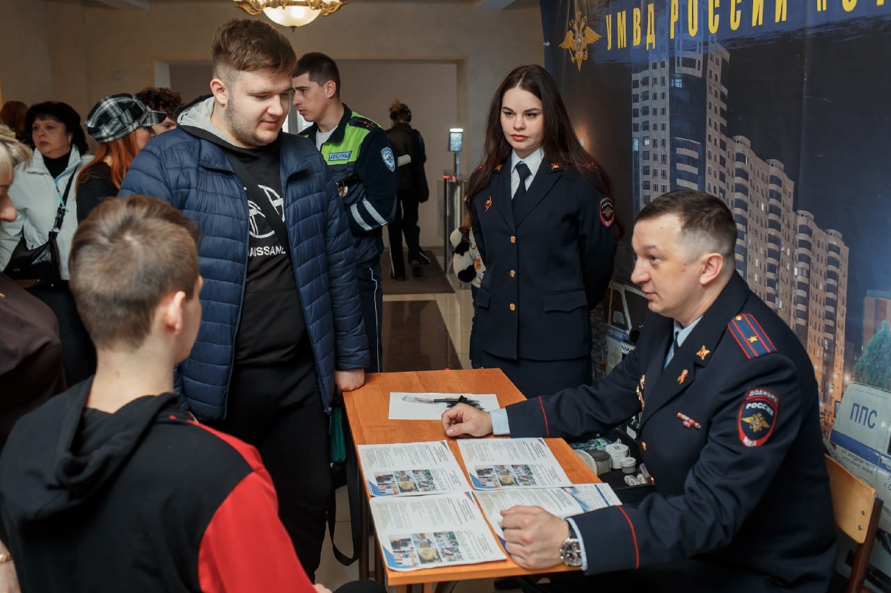 Начальник отдела по работе с личным составом УМВД Денис Олейник, инструктор направления профессиональной подготовки Сергей Серый и специалист направления профессиональной подготовки Константин Калинин рассказали студентам, как поступить в ведомственный вуз, пройти комиссию, есть ли вакансии.