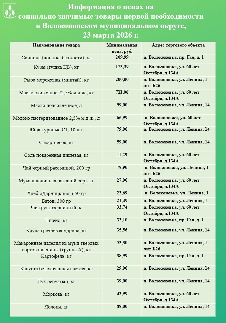 Уважаемые волоконовцы!. Информируем вас о ценах на продовольственные товары из базовой потребительской корзины, складывающихся в нашем муниципалитете на сегодняшний день