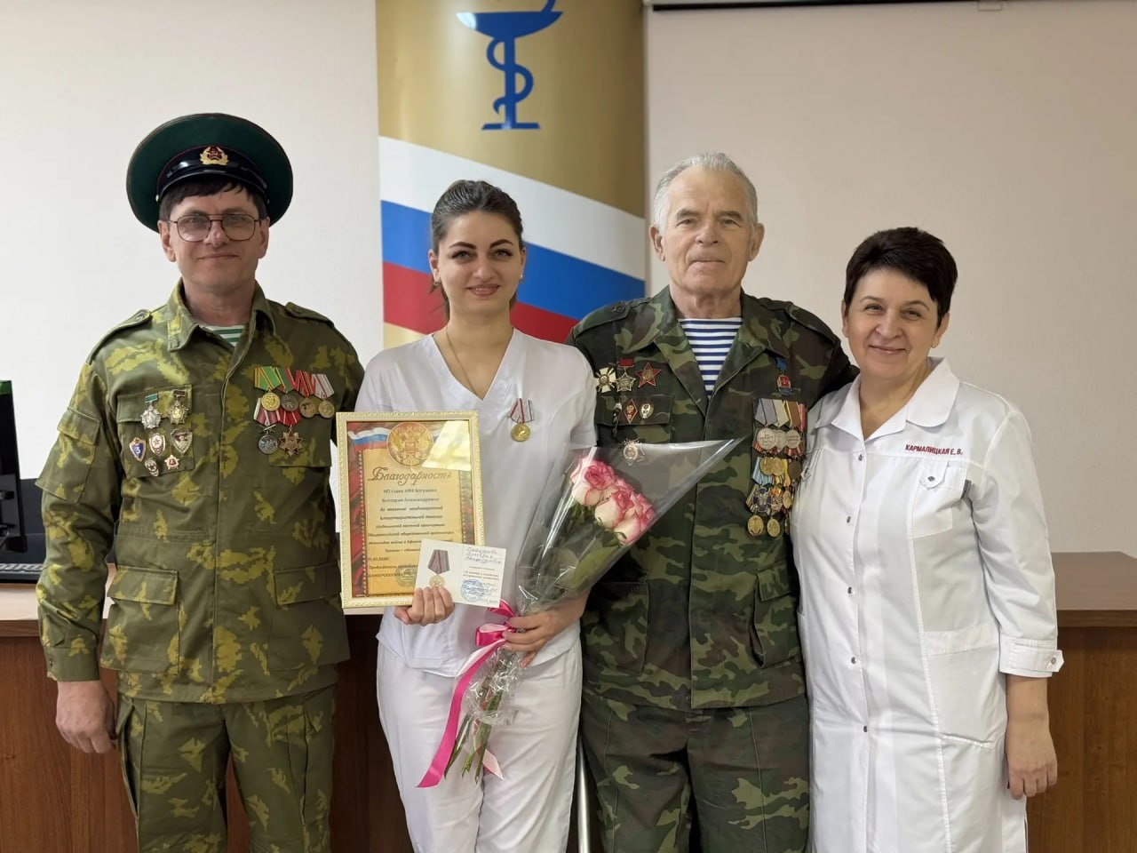 Виктория Александровна Богушева награждена медалью «За помощь и содействие ветеранскому движению». Награду ей вручил председатель правления Белгородской региональной общественной организации инвалидов и ветеранов локальных временных конфликтов Александр Иванович Прилуцкий. Отметим, что Александр Иванович тоже наш земляк.
