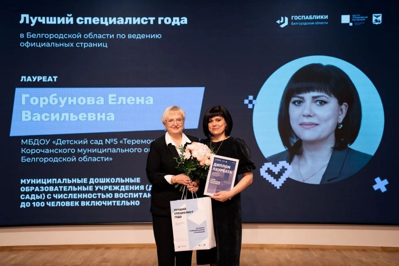Елена Васильевна стала лауреатом конкурса «Лучший специалист года» в Белгородской области по ведению официальных страниц.