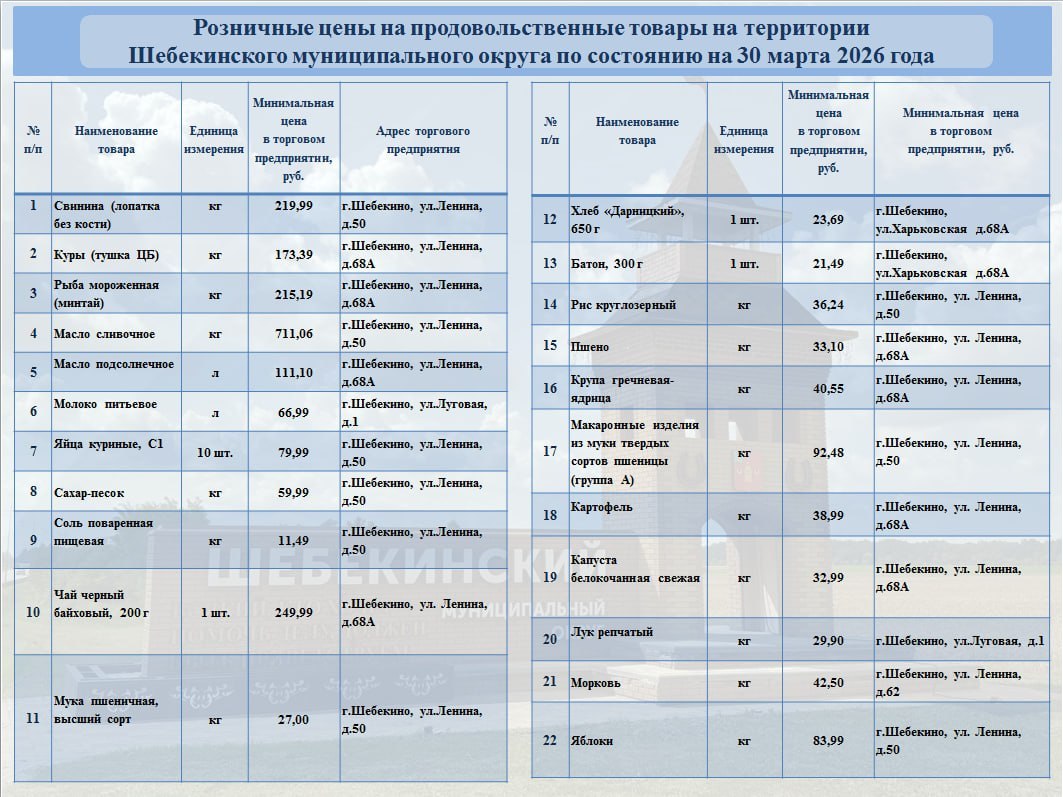 Дорогие жители!Чтобы вы могли ориентироваться в ценах и планировать семейный бюджет, продолжаю публиковать данные по стоимости социально значимых продуктов питания.В прикреплённой карточке — актуальные цены на 30 марта. Здесь вы найдёте информацию...