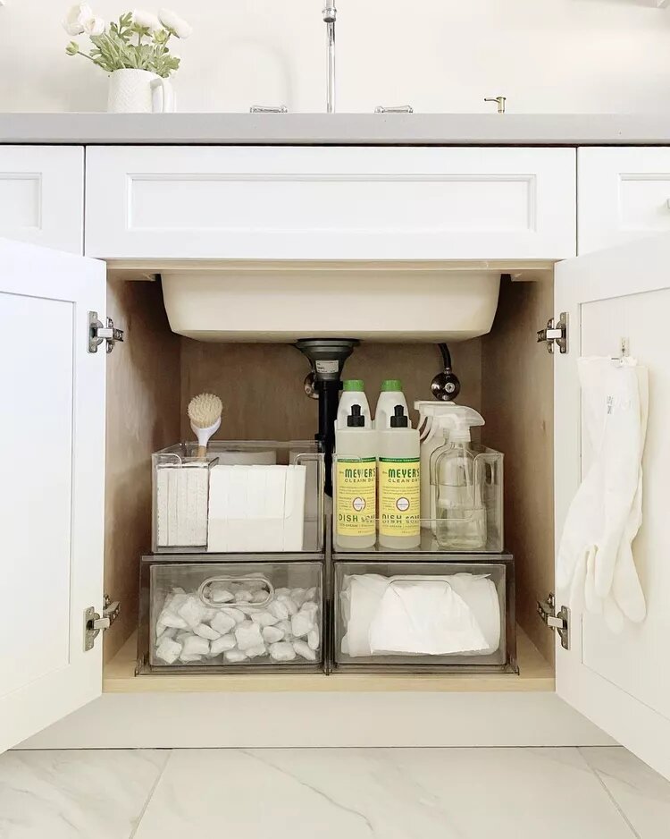 - Ящики с разделителями: Глубокие ящики с разделителями — отличный способ организовать посуду и предотвратить беспорядок. Пластиковые органайзеры также могут стать недорогим решением для хранения столовых приборов и мелочей.
