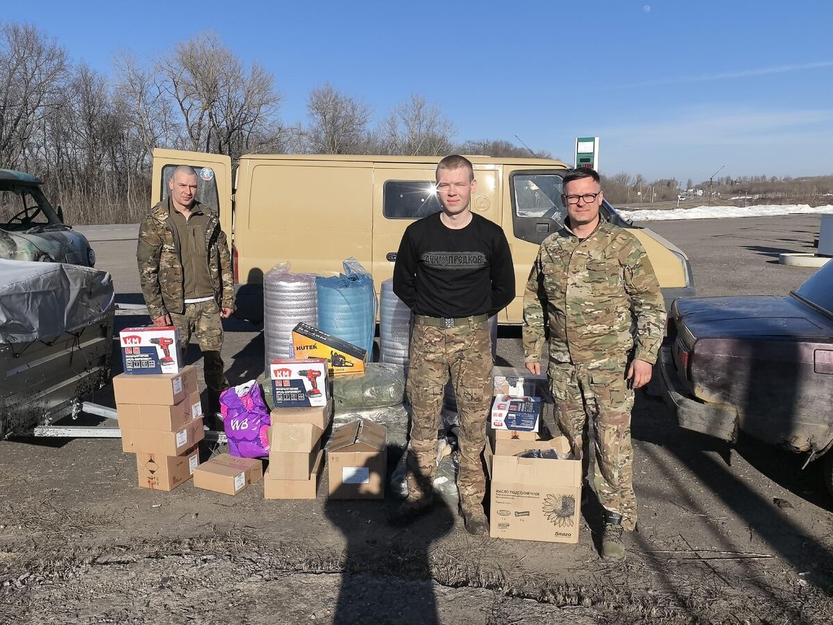 "Передали все, что собирали: маскировочные сети, строительный инвентарь, утеплители, газ, средства гигиены, компьютер, ноутбуки. В Белгороде одну машину передали, другую забрали - будем ремонтировать, чтобы снова отправить в дело", - рассказал Бомбин на своей странице в соцсети "ВКонтакте".
