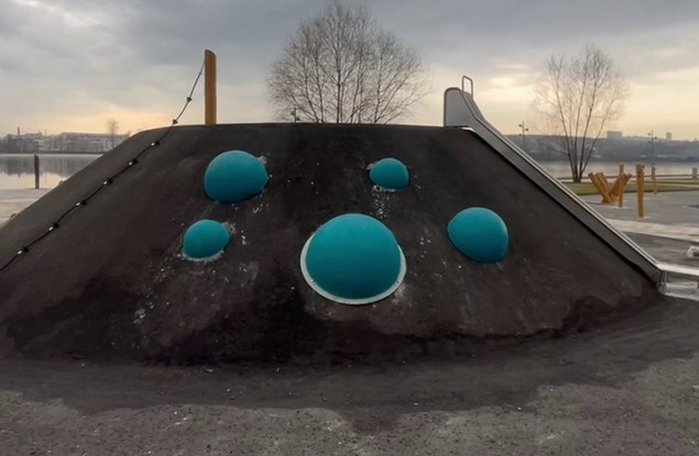 «Проектировщики отказались от стандартных решений. Вместо этого — геопластика, вписанная в ландшафт, и пространство площадью более 1 тыс. м?, которое полностью меняет представление о детской площадке», — отметил мэр Валентин Демидов.