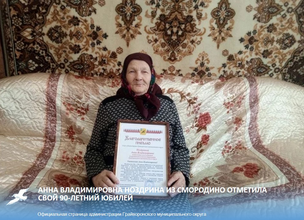 Анна Владимировна Ноздрина из Смородино отметила свой 90-летний юбилей