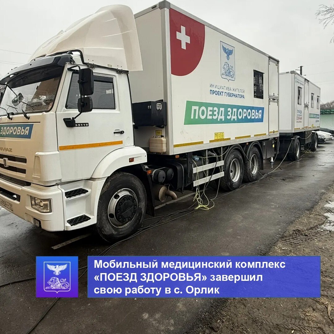 Благодаря нацпроекту «Продолжительная и активная жизнь» и инициативе губернатора, в селе Орлик успешно завершился проект «Поезд Здоровья». Это замечательная возможность для жителей пройти комплексное медицинское обследование. 100 человек смогли воспользоваться этой услугой!