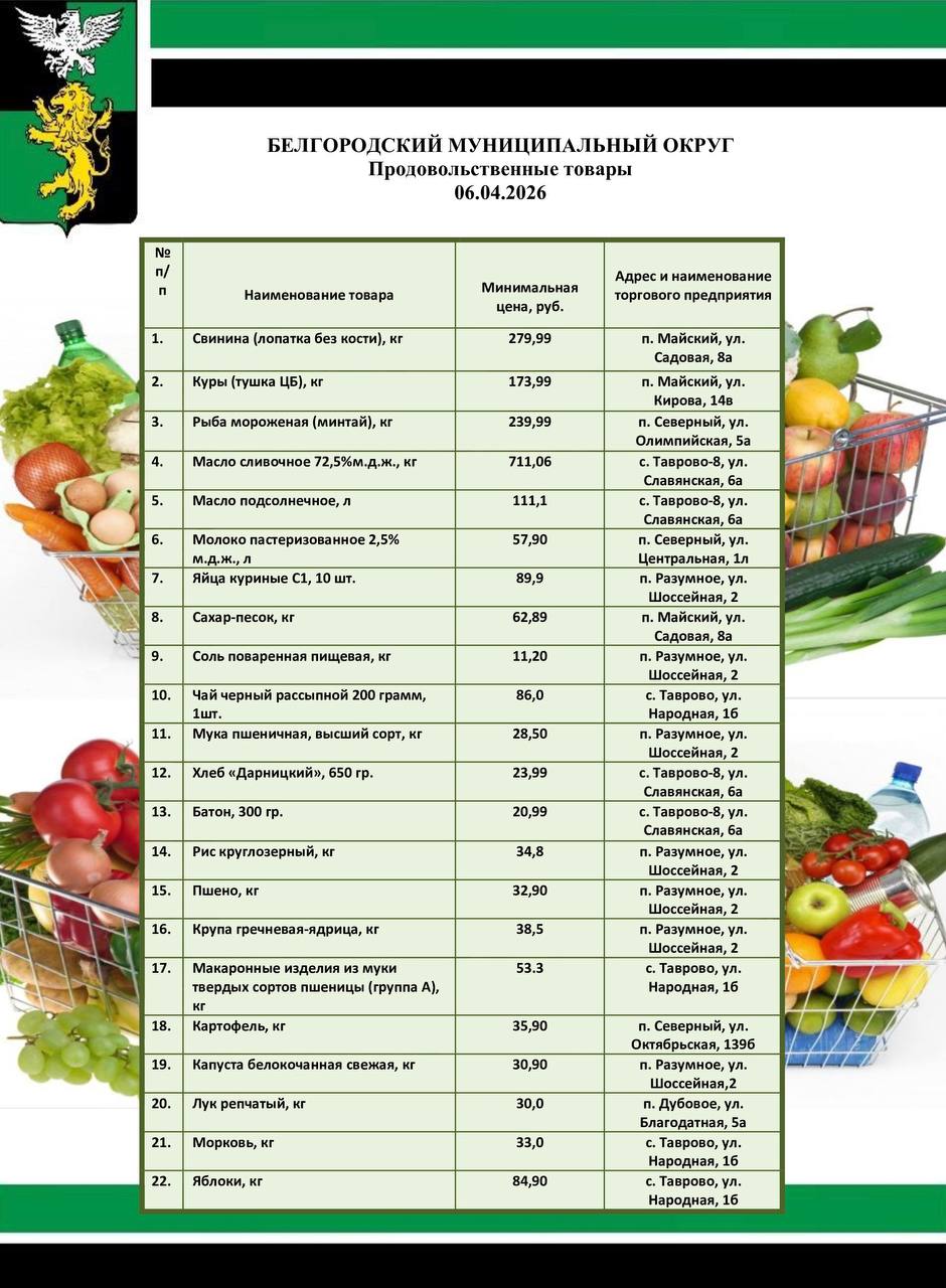Подготовила подборку актуальных цен на социально значимые продукты питания в торговых предприятиях Белгородского муниципального округа