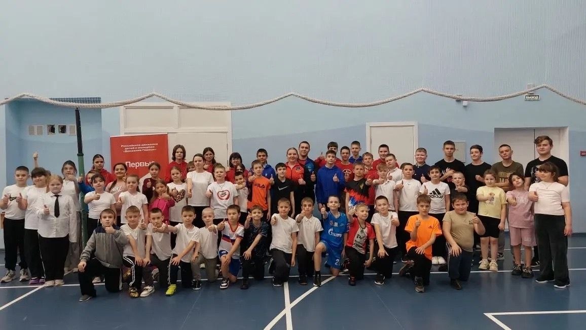 Наши чемпионы-гиревики провели зарядку для активистов «Движения Первых» городской школы №4.