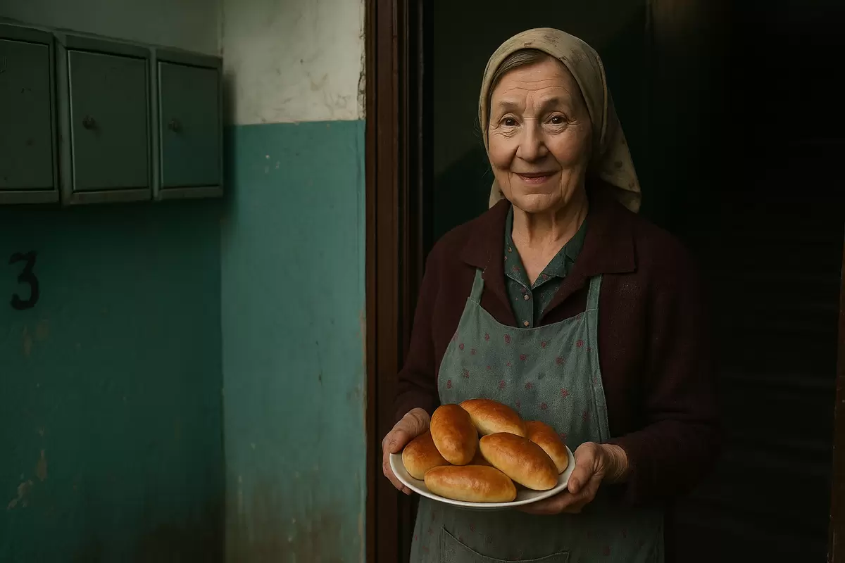 В старом доме, наполненном атмосферой прошлого, жизнь мимоходом проплывает мимо: мокрая лестница, железные почтовые ящики и обшарпанные стены. Однако самым ярким воспоминанием остаётся аромат свежесмешанных пирожков. В четверг тётя Зоя, соседка с пятого этажа, на протяжении многих лет радовала соседей теплом своей выпечки, словно вдыхая жизнь в серые будни.