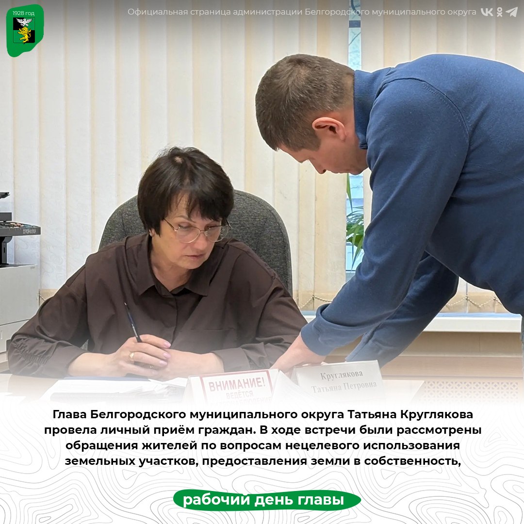 Глава Белгородского муниципального округа Татьяна Круглякова провела личный приём граждан