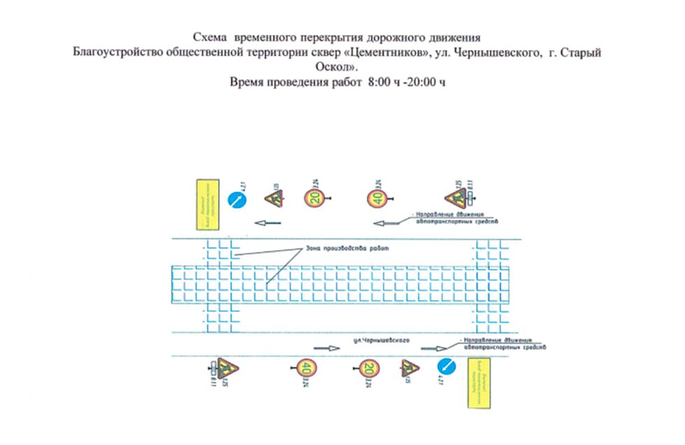 В связи с проведением работ по благоустройству до 31 августа c 8:00 до 20:00 будет ограничено движение транспортных средств в районе сквера «Цементников» на ул. Чернышевского в соответствии с прилагаемой схемой.