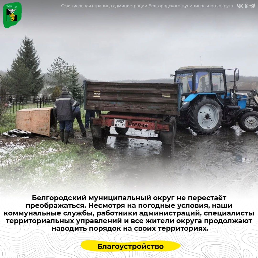 Ежедневно выполняется колоссальный объём работ: люди убирают мусор с кладбищ, вывозят порубочные остатки, приводят в порядок остановки общественного транспорта, общественные пространства, памятники и места воинских захоронений, выполняют восстановительные работы, осуществляют побелку деревьев и многое другое.