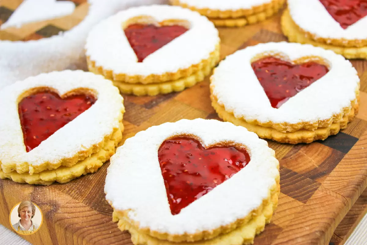 После выпекания изделия остужаются на противне. Затем на середину целого печенья выкладывают 1 ч. л. джема, а печенье с отверстием посыпают сахарной пудрой. Наконец, печенье с отверстием накрывает целое, чтобы создать сладкие 'сладости с сердцем'.