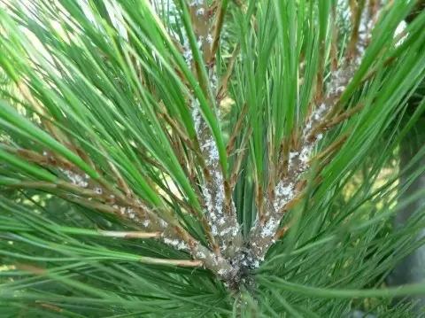 - На лиственнице этот вредитель приводит к деформации хвои: хвоинки желтеют и опадают.