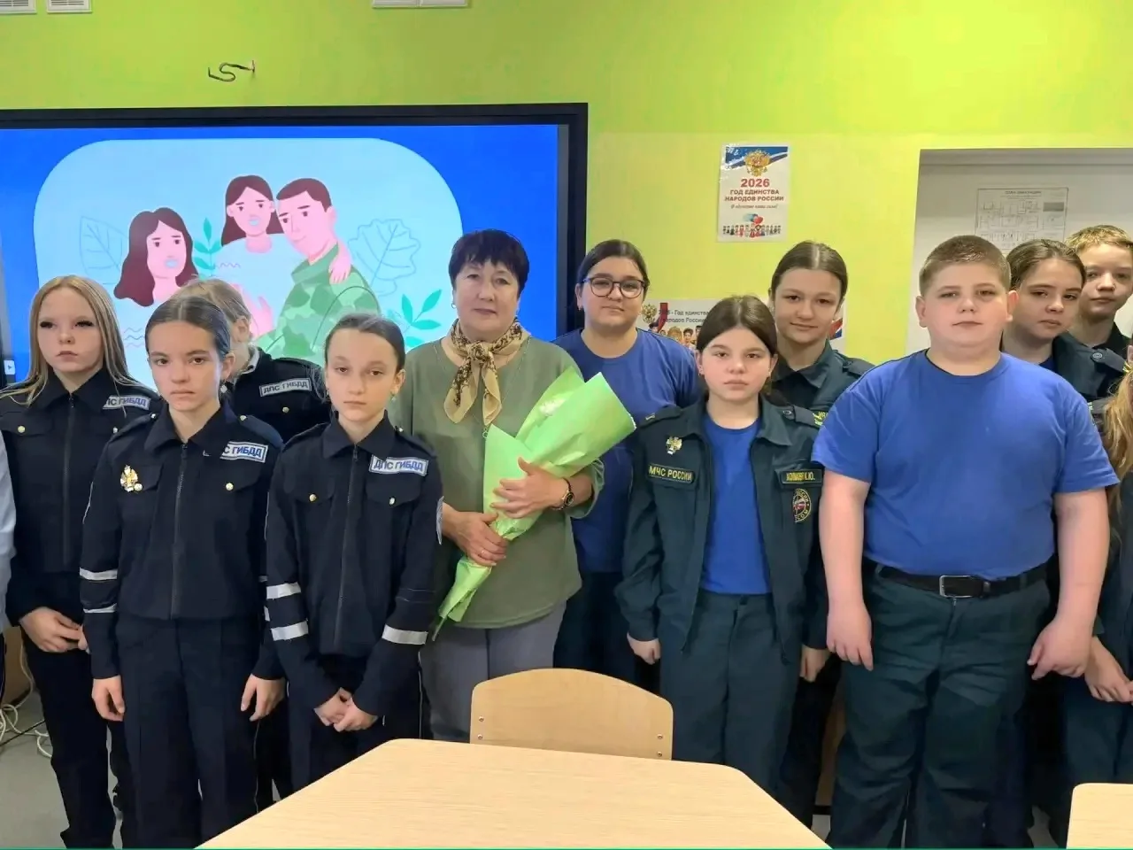 В городской школе №4 прошла встреча с Татьяной Николаевной Сазоновой, мамой погибшего участника специальной военной операции, Стеганцова Дмитрия.